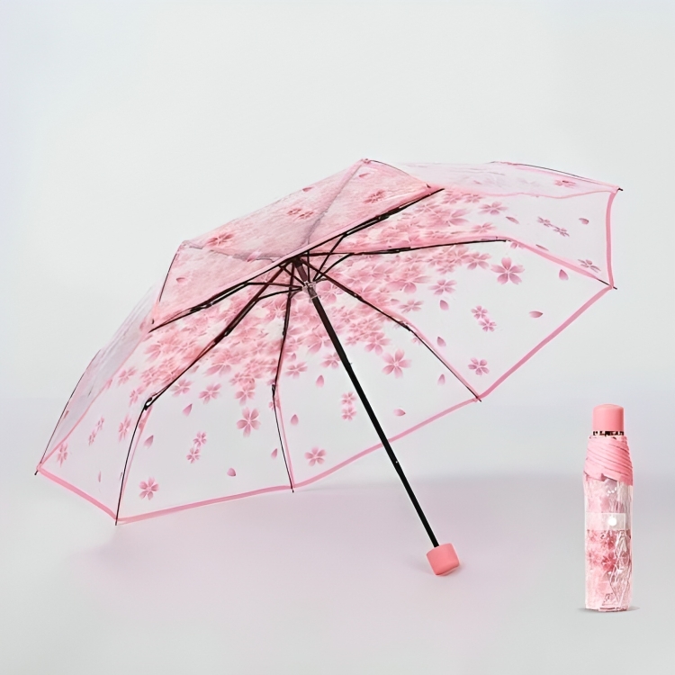 চেরি ব্লসম কোরিয়ান ভার্সন থ্রি ফোল্ড ট্রান্সপারেন্ট আমব্রেলার পণ্যের বিবরণ