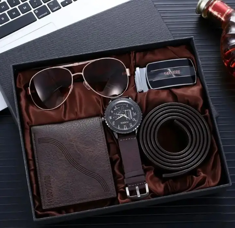 পুরুষদের উপহার সেট বিলাসবহুল ঘড়ি সানগ্লাস ওয়ালেট পেন কী রিং বেল্ট 6pcs ব্যবসা পুরুষদের জন্য উপহার সেট কোয়ার্টজ ঘড়ি উপহার সেট