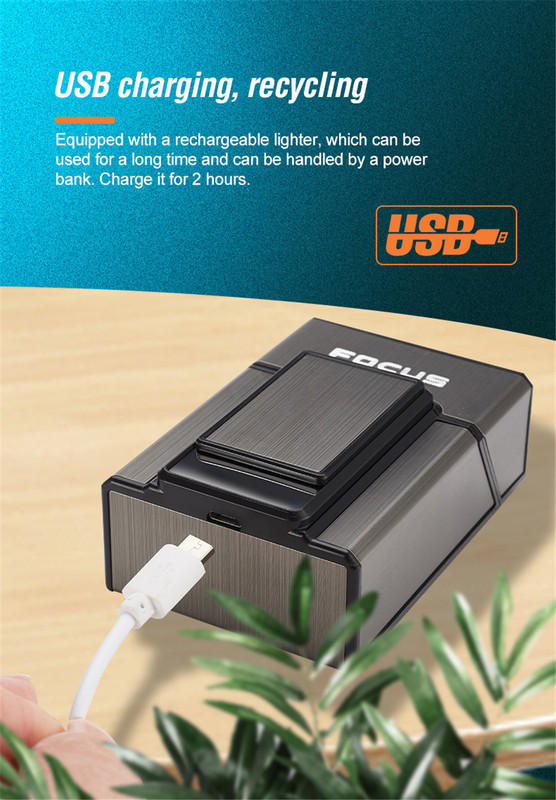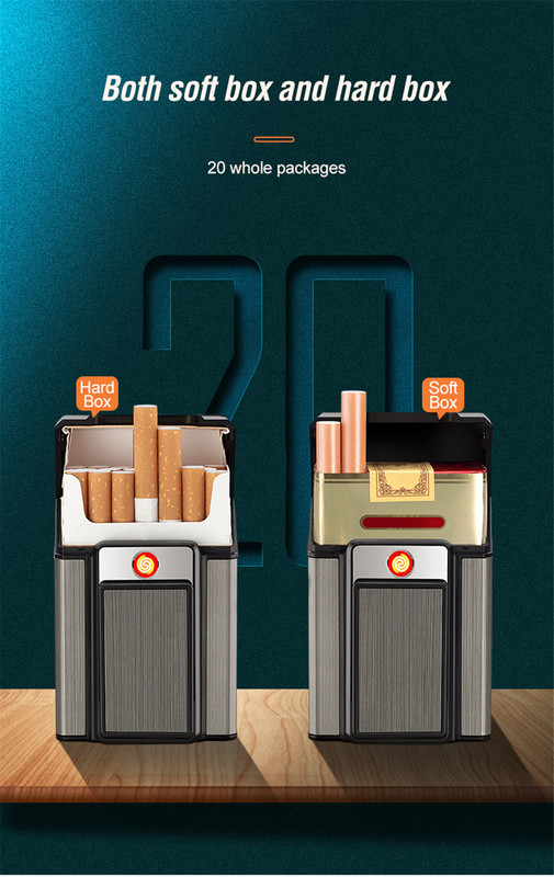 ক্রিয়েটিভ সিগারেট কেস USB রিচার্জেবল লাইটার মেটাল উইন্ডপ্রুফ সিগারেট লাইটার 20 সিগারেট কেস পোর্টেবল স্টোরেজ কন্টেইনারের পণ্যের বিবরণ