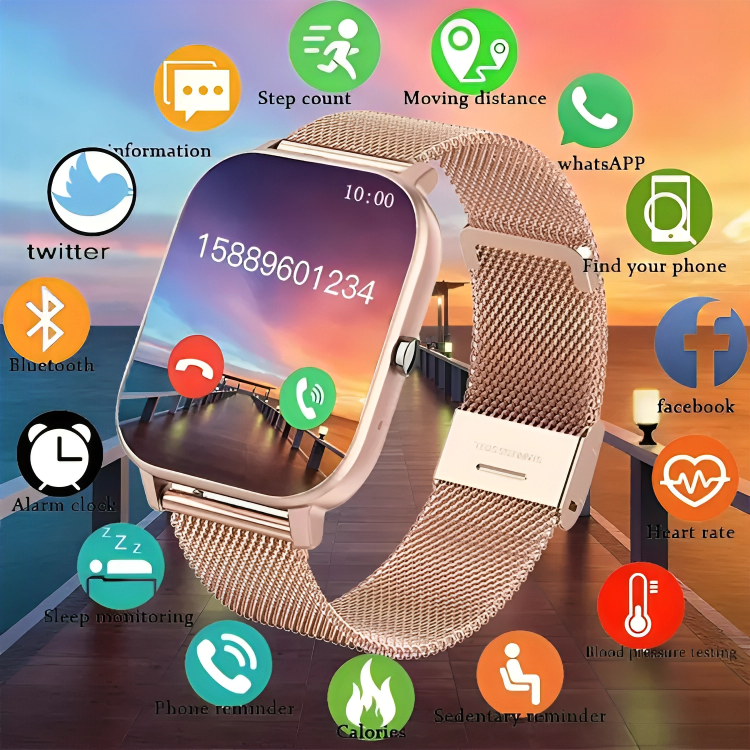 Custom wallpaper, Bluetooth call, music control, social APP message reminder, incoming call reminder, SMS reminder, multi exercise, alarm clock reminder, sedentary reminder, search for mobile phone, music playback, stopwatch, step counting, distance, calories, sleep monitoring, heart rate Monitoring, blood pressure, blood oxygen, searching equipment, language switching, and raising your hand to brighten the screen.