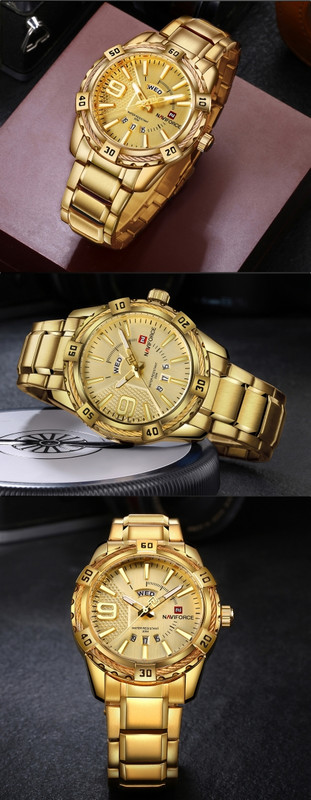 Naviforce NF9117 এর স্পেসিফিকেশন - পুরুষদের জন্য গোল্ডেন স্টেইনলেস স্টিল এনালগ ঘড়ি - গোল্ডেন
